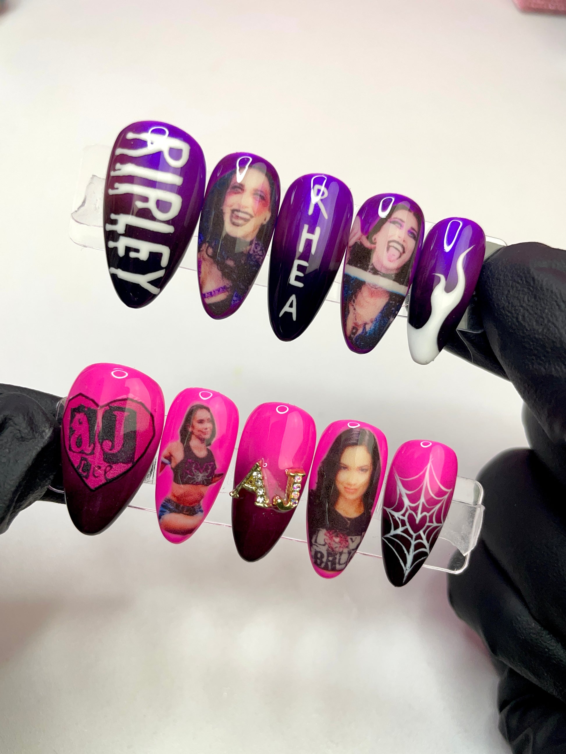 Glossy purple and electric green polish design with our fav duo